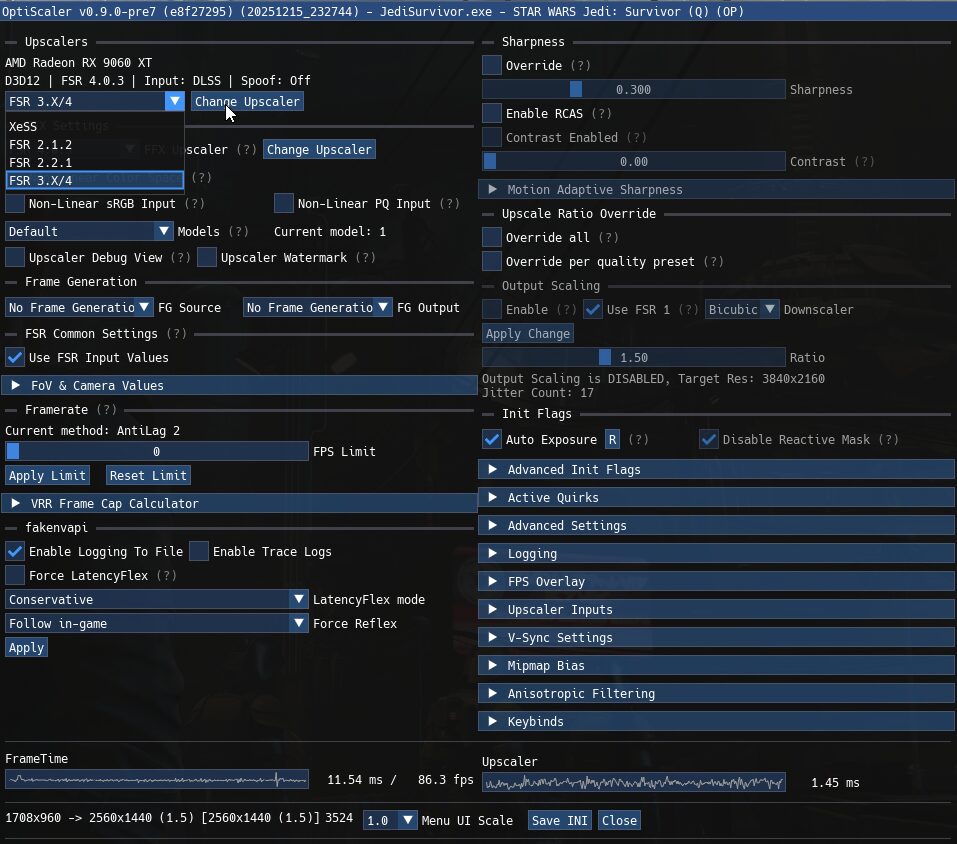 - Retorne ao Optiscaler e confirme se o modelo FSR 4.0.0 permanece selecionado.