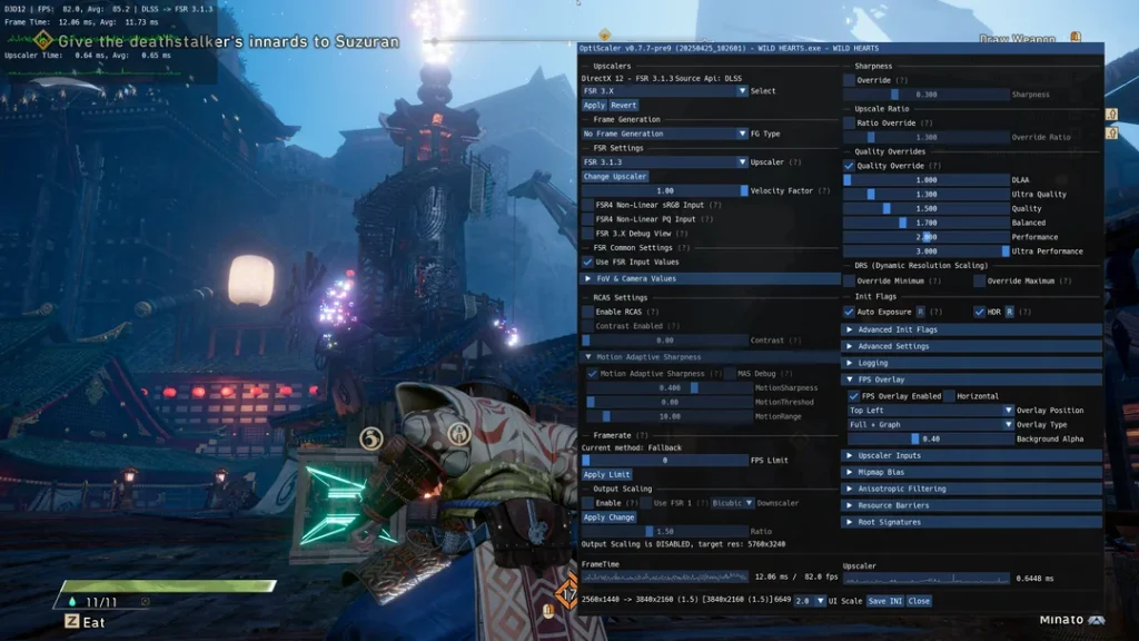 - Pressione a tecla Insert para acessar a interface do Optiscaler.