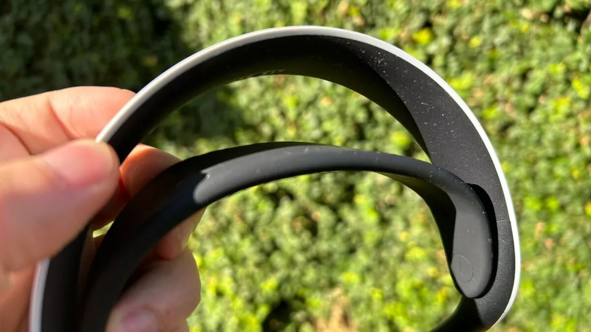 O acabamento de qualidade foi um dos aspectos que mais me chamou a atenção no headset Pulse Elite. Ele é construído na cor branca e suas linhas de design seguem o mesmo estilo do PlayStation 5. As hastes alongadas nas laterais dão um aspecto mais futurista ao produto.