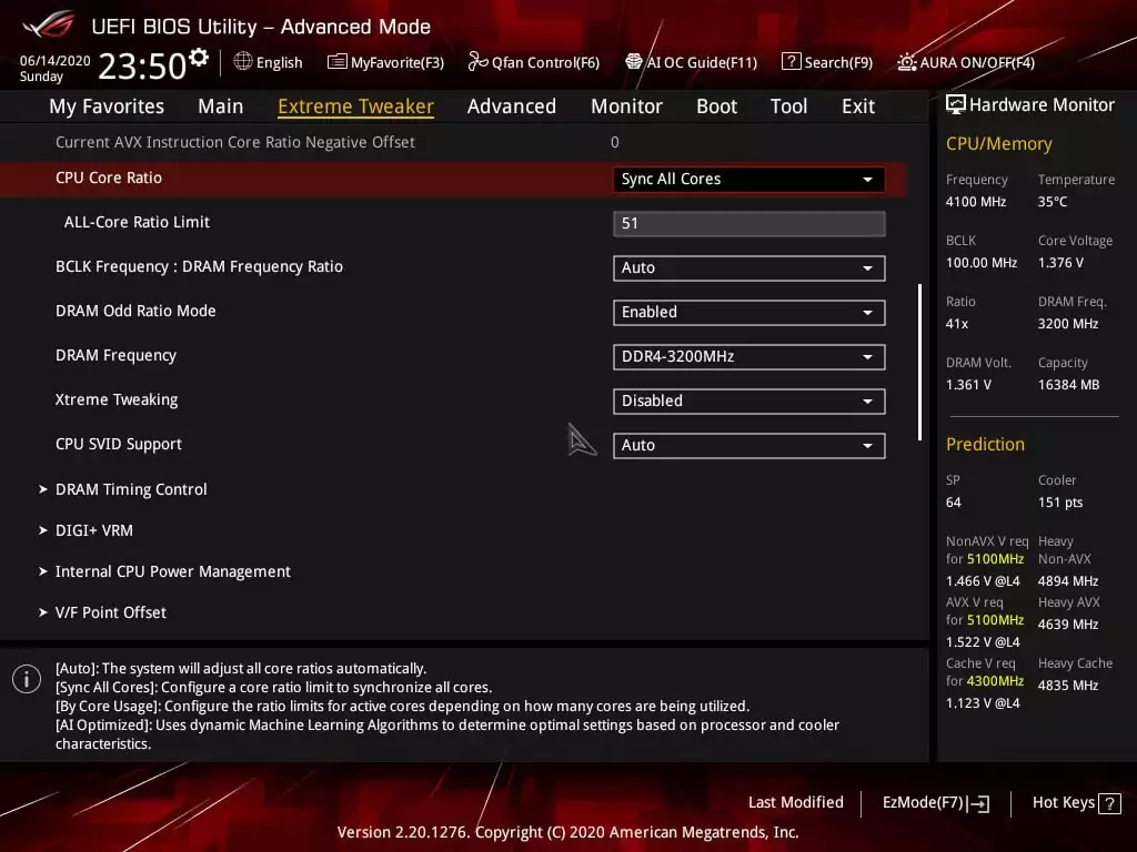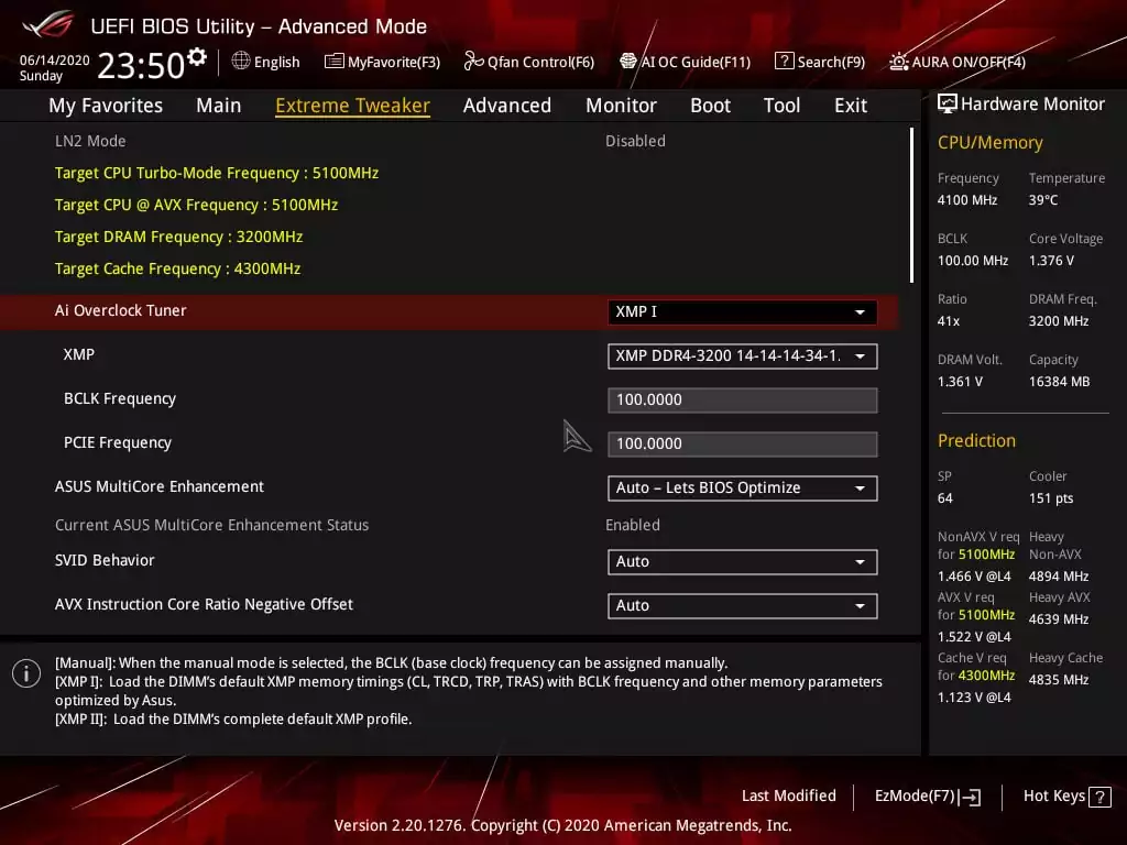Fiz um teste com o sistema de overclock através da tecnologia IA da BIOS da ASUS. O que o sistema fez foi definir o perfil XMP máximo das memórias, e aumentou alternadamente o clock dos núcleos, chegando em 5.1GHz, o que naturalmente apresentou um ganho de desempenho, ficando entre o modo default e o overclock que apliquei em todos os núcleos, certamente é o modo mais indicado para a maioria dos usuários.