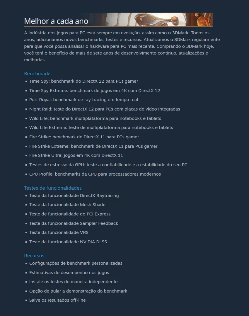 Talvez um dos softwares mais conhecidos entre os amantes de overclock e benchmark. Extremamente preciso e competente, conta com testes que além de testar aplicações 3D em resoluções elevadas, também é compatível com tecnologias modernas, como Ray Tracing e DLSS (Deep Learning Super Sampling).