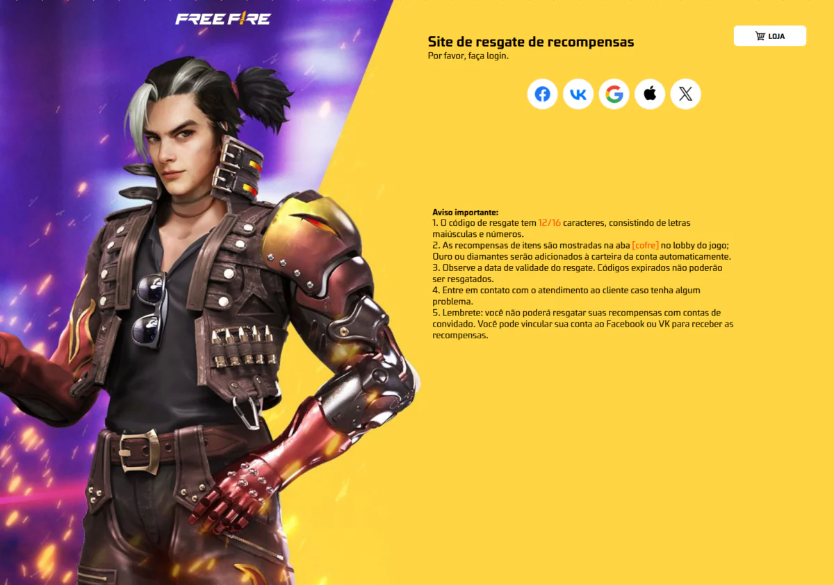 - Acesse o portal oficial: https://reward.ff.garena.com