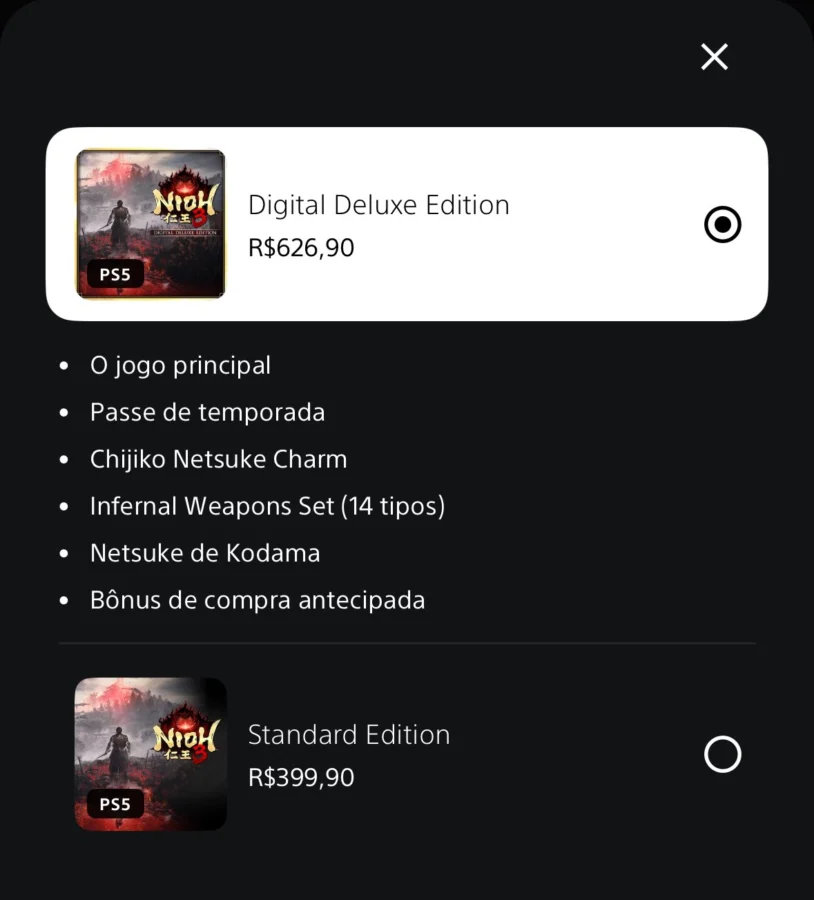 A discrepância também alimenta o debate sobre o peso da precificação dos jogos da Sony no país. Segundo a página oficial da PlayStation Store, a edição deluxe oferece o jogo base, passe de temporada, os amuletos Chijiko Netsuke e Kodama Netsuke, além do conjunto de armas Infernal Weapons com 14 tipos diferentes.