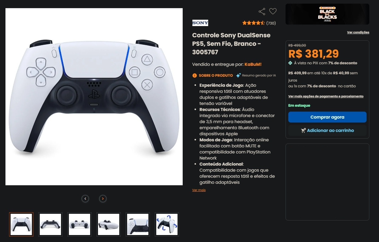 Basicamente, a margem de preço possível a ser cobrada pelo DualSense na Black Friday é entre R$ 315 ~ R$ 335, sem considerar descontos especiais.
