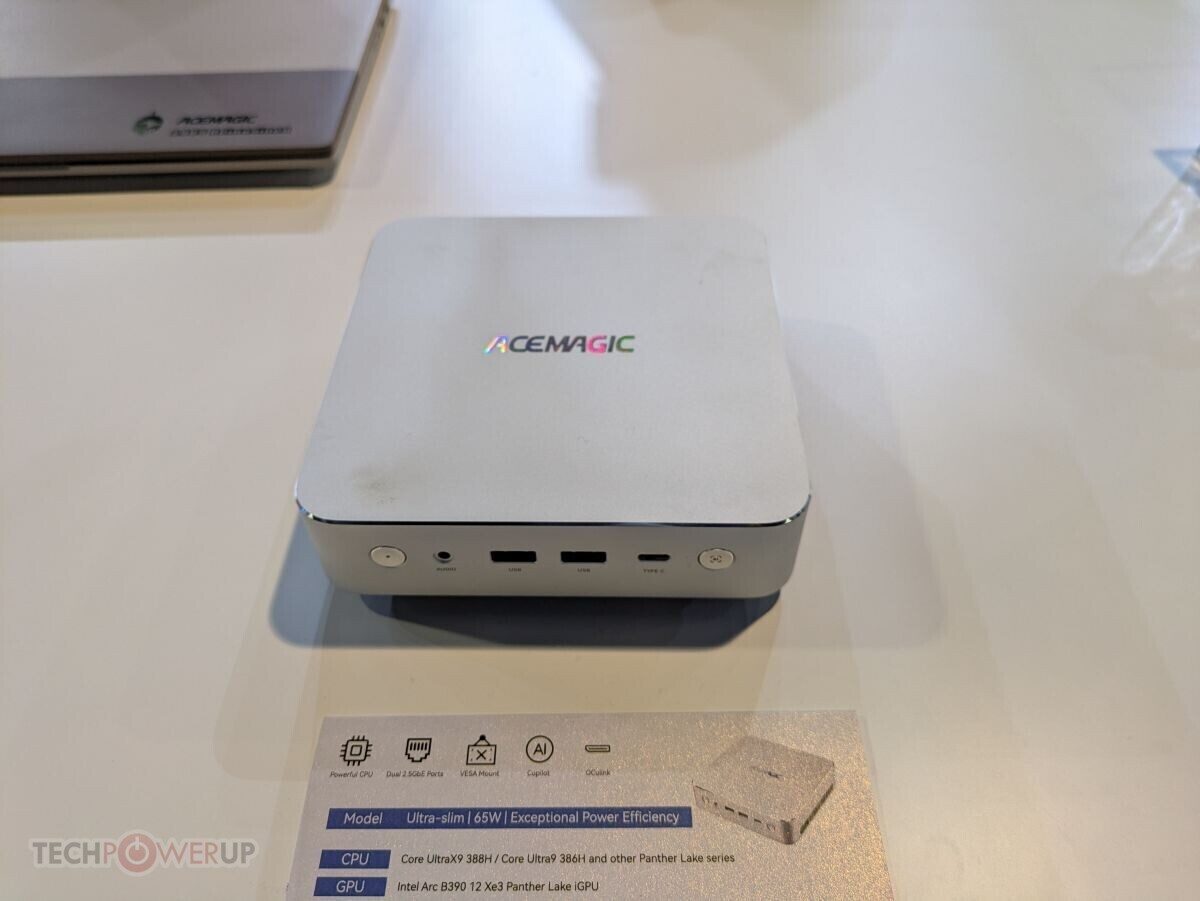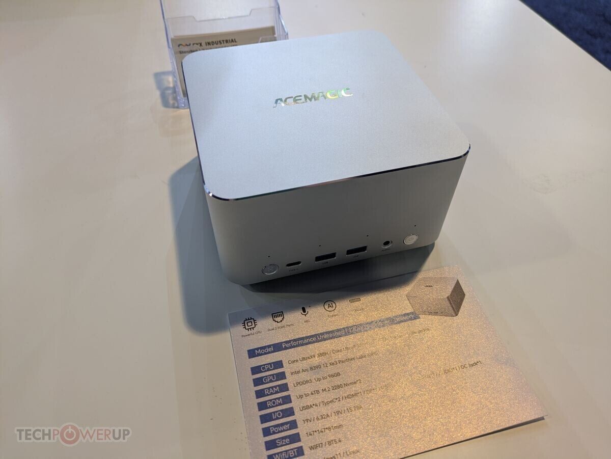Sobre o modelo baseado no “Panther Lake” da Intel, ele promete eficiência energética excepcional em um mini PC. A versão com Core Ultra X9 388H com uma iGPU Arc B390 e capacidade de memória de até 96 GB LPDDR5X.