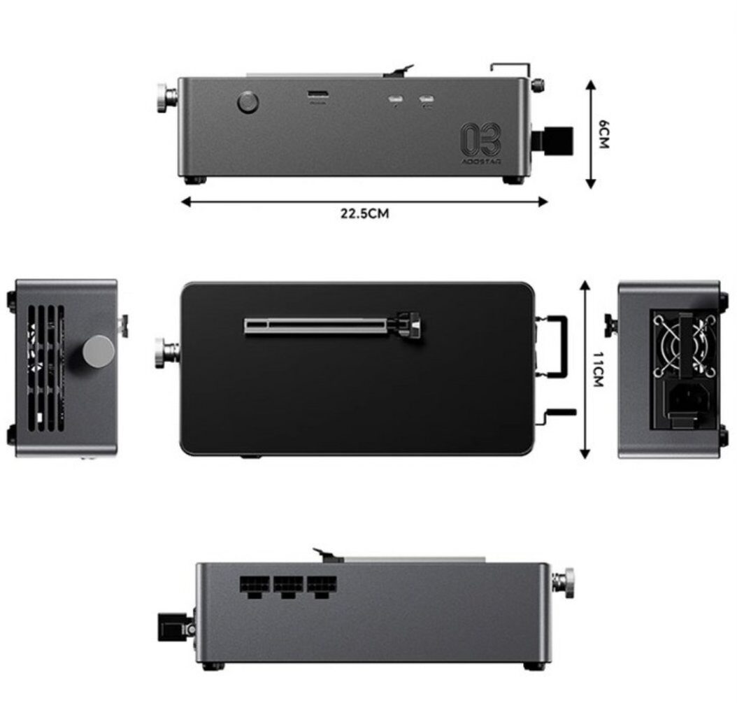 A AOOSTAR lançou oficialmente o AG03, seu novo dock para GPU. Ele já está aparecendo em anúncios de terceiros, após teasers anteriores que mencionavam duas portas Thunderbolt 5 e suporte a OCuLink.