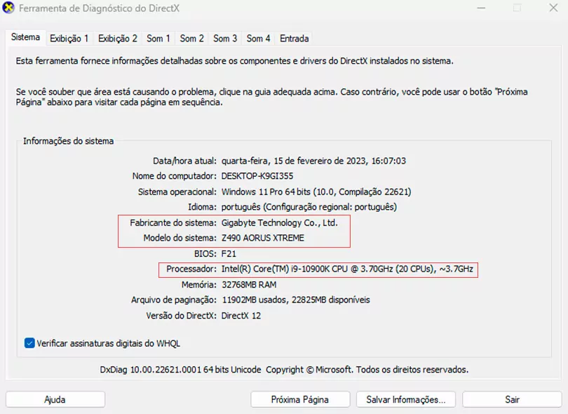 Se, por alguma razão, uma das informações não for informada corretamente, outra alternativa é fazer o download e instalação do CPU-Z, que é um software confiável de terceiros e que serve também para identificar as informações do computador.