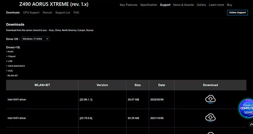 Quem preferir, pode optar por instalações manuais de drivers. Para isso, é necessário pesquisar pelos drivers específicos da placa-mãe do setup no Google, como “Z490 AORUS XTREME drivers“, no nosso caso. Na página do produto, é preciso procurar pela aba de suporte ou drivers, dependendo da página. Depois disso, selecionar a versão do Windows e, então, os drivers serão separados de acordo com os recursos disponíveis na placa-mãe, como Áudio, Chipset, LAN, VGA entre outros.