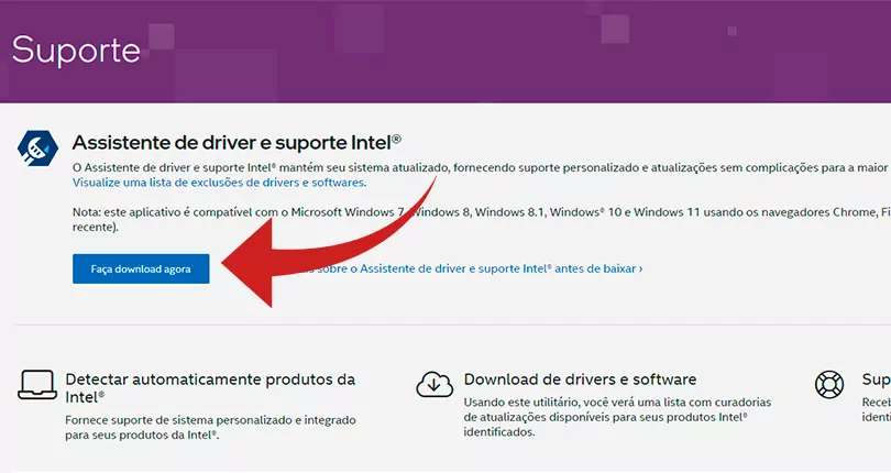 Em caso de processadores Intel, um caminho interessante é procurar pela ferramenta de identificação e atualização de drivers da própria fabricante. Para encontrá-la, basta procurar por “Baixar drivers e software Intel“, no Google, ou acessar este link. O recurso faz uma varredura de sistema e identifica quais drivers são os indicados para a sua máquina em específico, considerando todos os componentes da companhia presentes no computador, como chipset, processador e gráficos integrados, por exemplo.
