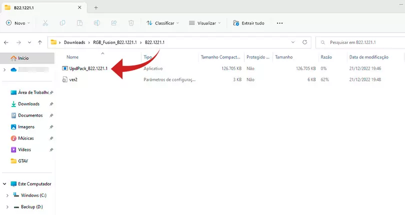 O processo de instalação neste caso é simples. Depois de escolher o driver de qual componente deseja instalar, um arquivo zip será baixado. Basta extrair os dados internos e executar o aplicativo disponível internamente. No print abaixo, instalamos o driver para atualizar a função de RGB Fusion, disponível na placa-mãe.