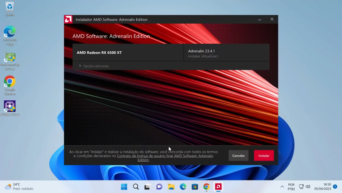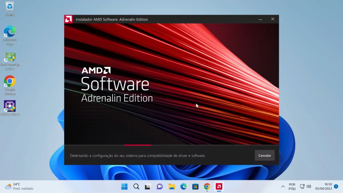 Durante o processo de instalação dos drivers de vídeo da AMD, o sistema identificará a GPU presente nos setup e exibirá a versão do arquivo que está sendo instalada.