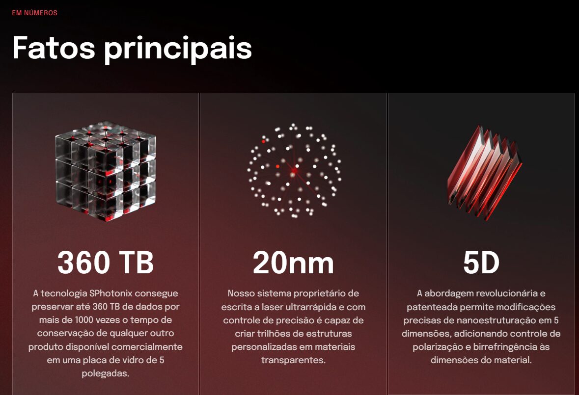 A iniciativa mais recente vem da SPhotonix, startup fundada em 2024, que afirma ter alcançado um estágio técnico suficiente para iniciar projetos-piloto voltados ao arquivamento de dados frios, aqueles acessados com pouca frequência, mas que precisam ser preservados por décadas ou séculos.