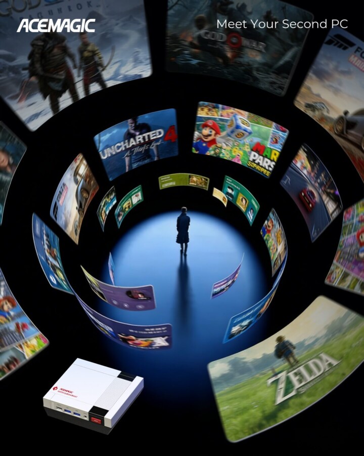 Parece evidente que a Acemagic está aproveitando o sucesso da Ayaneo (e da Nintendo) com seu design “inspirado em consoles de jogos icônicos”.