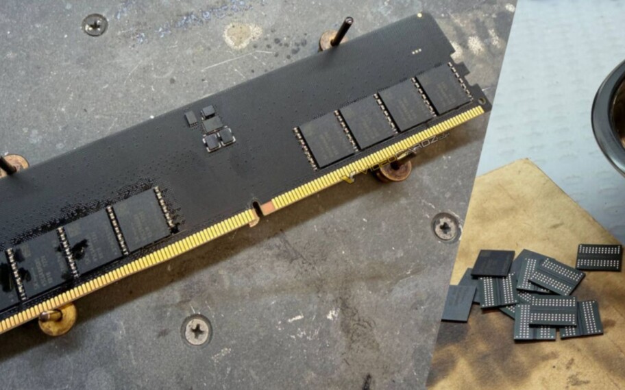 Agora, para contornar a situação, um modder russo montou sua própria memória RAM DDR5 usando módulos e placas de circuito impresso (PCBs). A montagem finalizada funciona com sucesso a 6400 Mhz e um único módulo tem suporte para 32 GB de memória DDR5 para desktop com suporte XMP adequado.