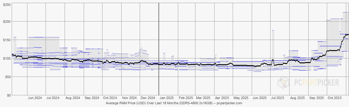 Um kit de 32 GB (16 GB x 2) com taxa de transferência de 4800 MT/s está sendo vendido por cerca de US$ 160 (R$ 863,82) a US$ 170 (R$ 917,81). Os mesmos kits eram vendidos por menos de US$ 100 (R$ 539,89) em agosto.