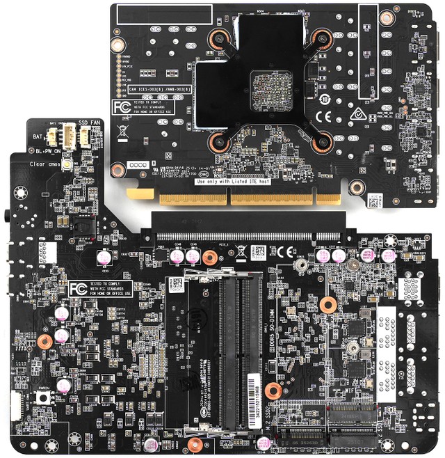 | Qual a vantagem principal desse design? | Permite colocar uma GPU potente de desktop em um gabinete mini PC muito pequeno (2,65L) sem usar conectores de força externos. |