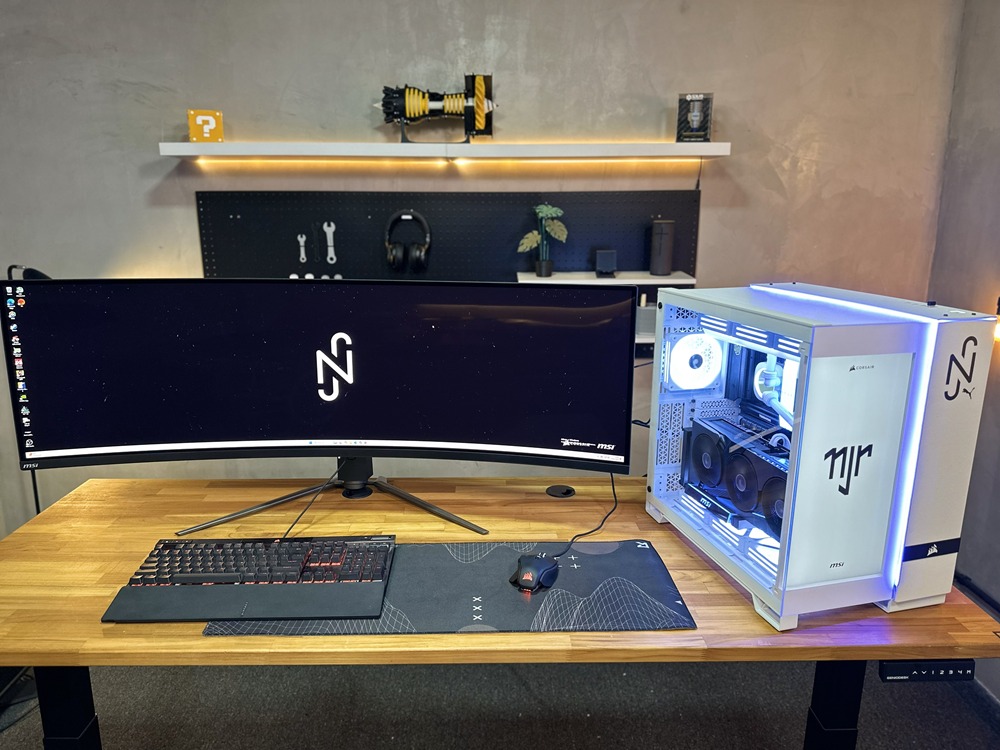 Por último, mas longe de ser o menor importante, o setup completo é finalizado com um monitor MSI de 49 polegadas, que oferece um campo de visão amplo para os jogos.