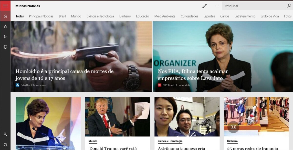 O Microsoft News atua como um agregador de manchetes, alimentado pelo serviço Microsoft Start.