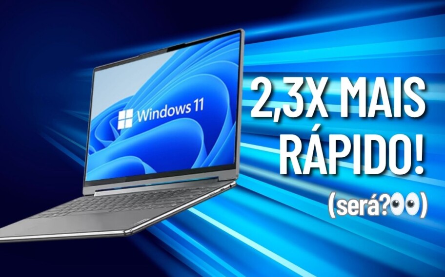 Em uma lista de supostos benefícios do Windows 11, o post da Microsoft alega PCs com o novo sistema são até 2,3 vezes mais rápidos do que dispositivos com o Windows 10. É uma declaração surpreendente para quem atualizou sua máquina e não viu esse ganho todo de performance, então é evidente que o texto vem acompanhado de uma nota de rodapé que explica o “segredo”.
