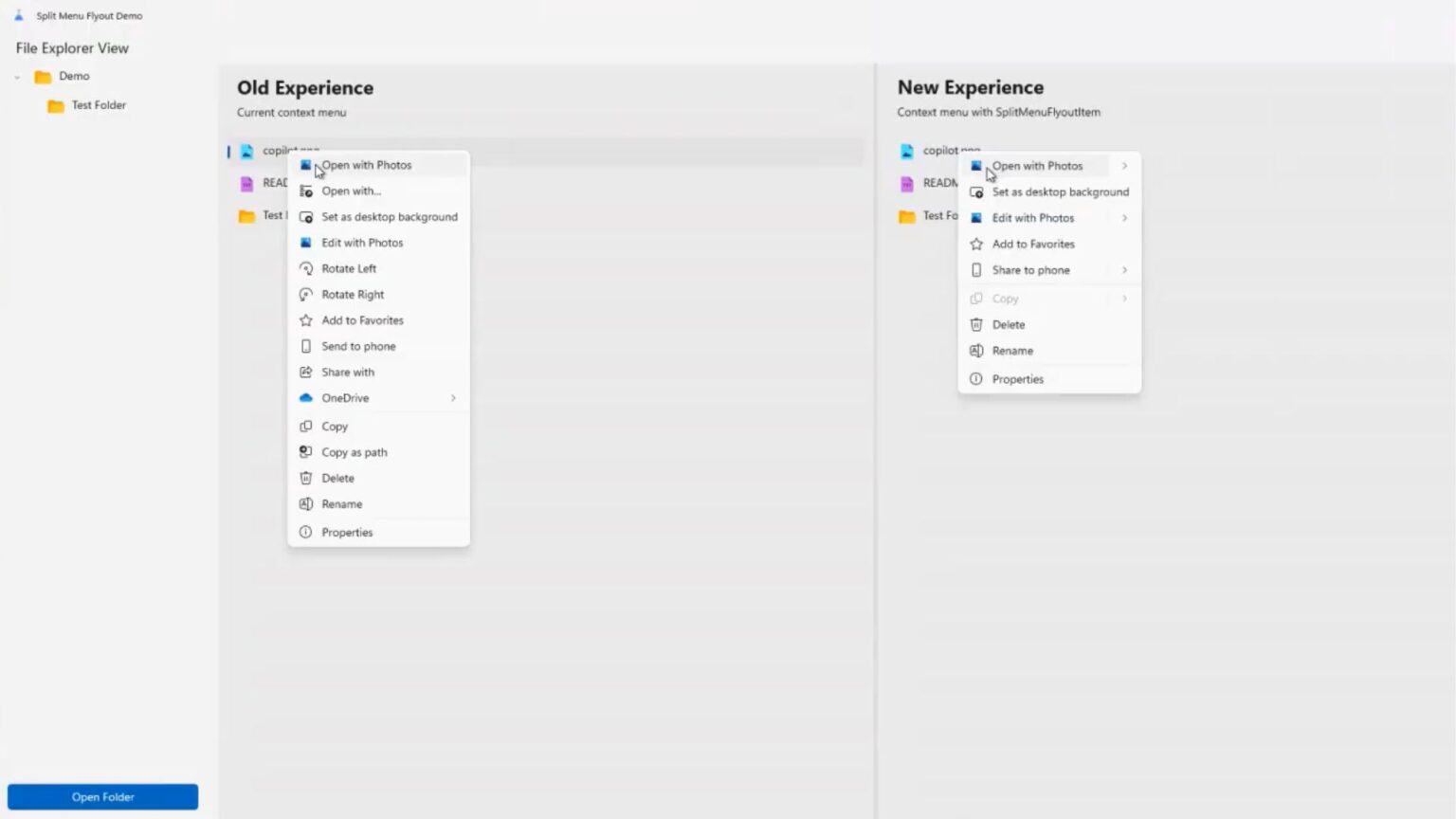 A Microsoft confirmou que reconhece esta situação e tem planos para modificar o visual do sistema. Em um evento recente voltado para a comunidade de desenvolvedores, a WinUI Community Call, foram apresentadas propostas para uma atualização do menu de contexto. O projeto recebeu o nome de Menu de Contexto Dividido.