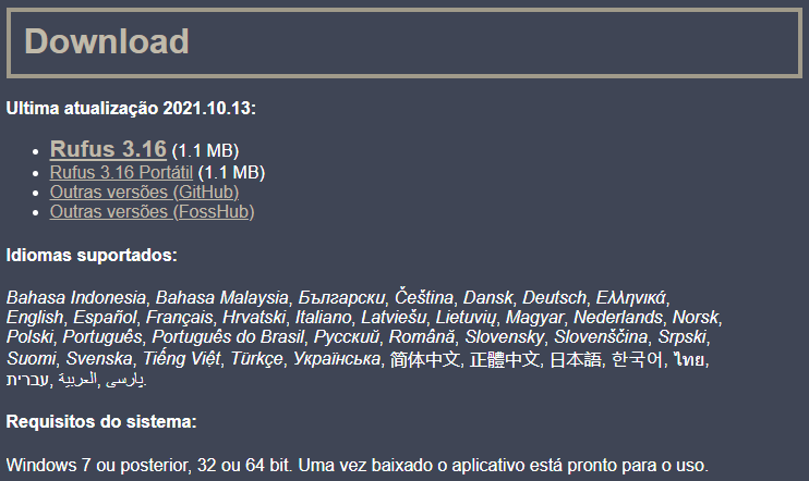 O processo é extremamente simples e exatamente como já mostramos antes, pode ser feito em poucos minutos com apenas 4 cliques após baixar o aplicativo e a ISO, disponíveis nos links abaixo: