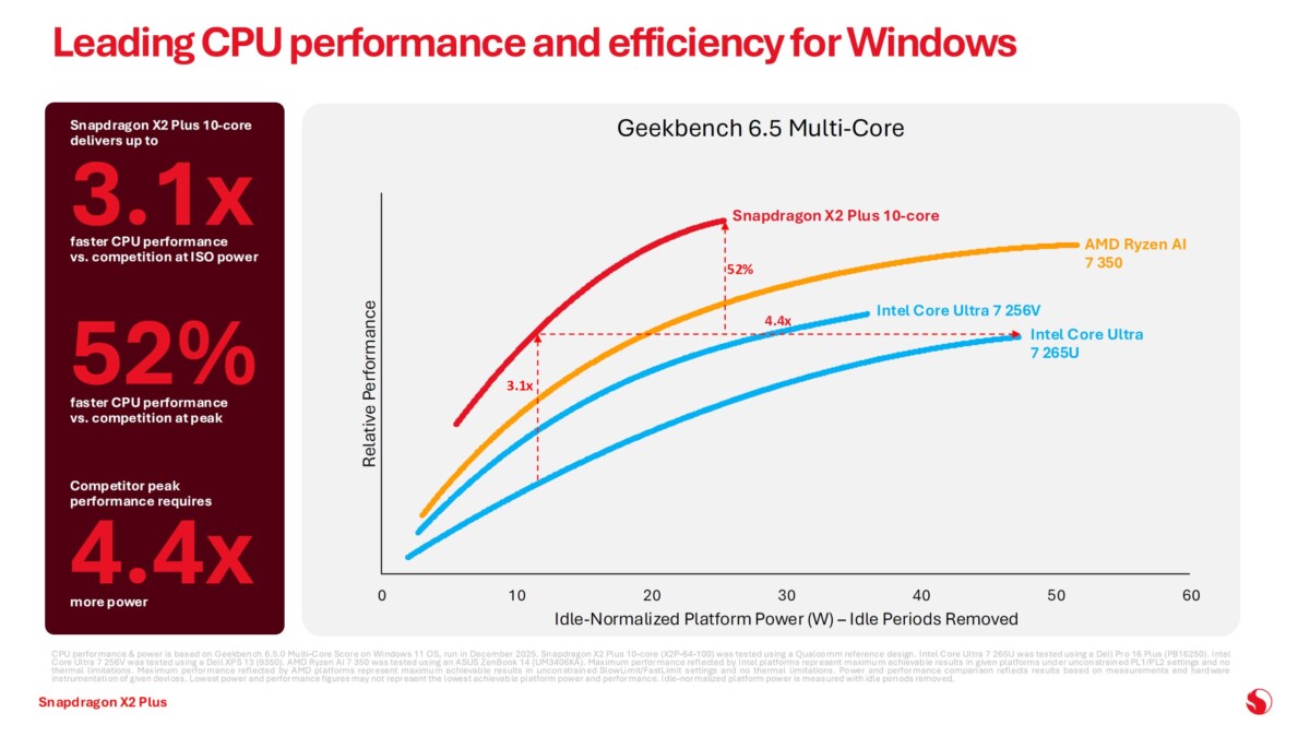 Contra a AMD e seus processadores Ryzen AI, o X2 Plus busca se posicionar como a alternativa de maior eficiência por watt.