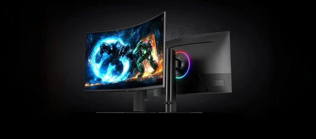O principal diferencial do lançamento reside em seu display VA com resolução UHD 4K (3840 x 2160 pixels). A tela conta com uma curvatura de 1000R, desenhada para preencher o campo de visão periférico do usuário e aumentar a sensação de profundidade em PC Games de mundo aberto ou simulares de corrida.