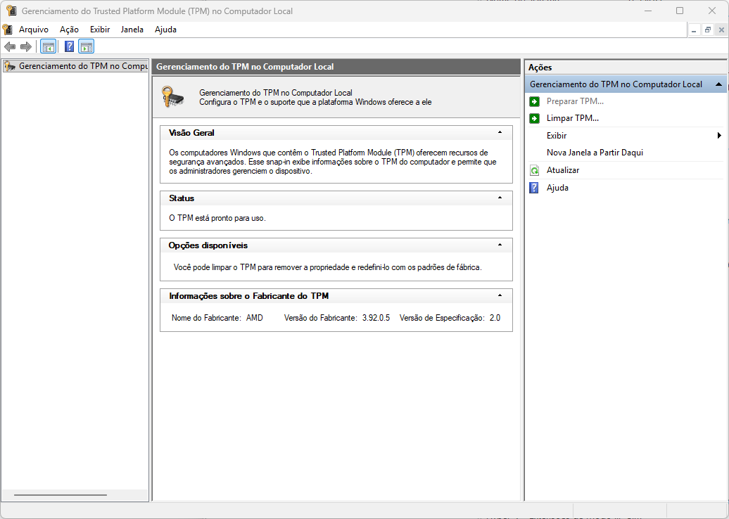 - O status ideal é “TPM pronto para uso” com a versão 2.0.