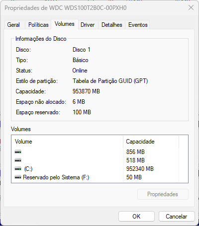 Pressione Windows + X e selecione Gerenciamento de disco. Clique com o botão direito sobre o disco do Windows (geralmente Disco 0) e abra Propriedades. Na aba Volumes, confira o campo Estilo de partição: