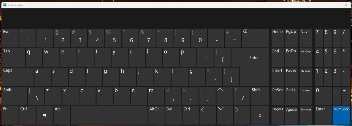 - Em notebooks, use a combinação Fn + F2 (ou equivalente) para ativar o Num Lock e, em seguida, utilize as letras U, I, O, J, K, L, M como substitutos dos números.