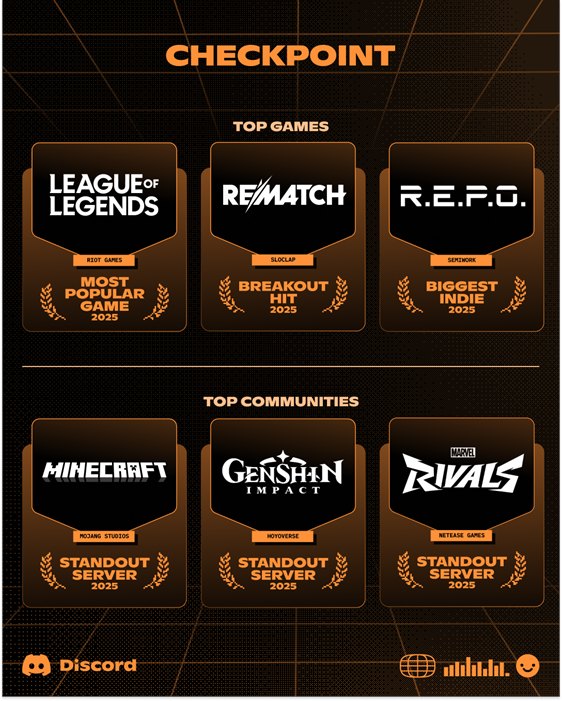 A ferramenta Checkpoint também mostra aos usuários quais foram os cinco jogos que eles mais jogaram. Ao nível global, a plataforma identificou os títulos com maior engajamento entre sua comunidade em 2025.